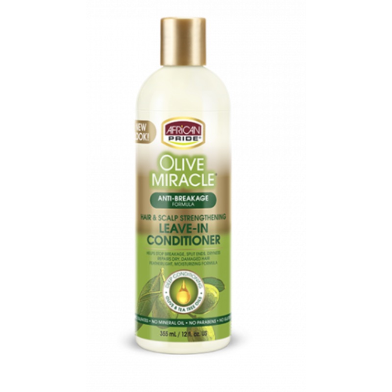 African Pride Olive Miracle Leave-in Conditioner is enriched with natural olive oil extract to help protect hair from damage and strengthen from within for stronger, healthier-looking locks. This lightweight formula can be used on all hair types.