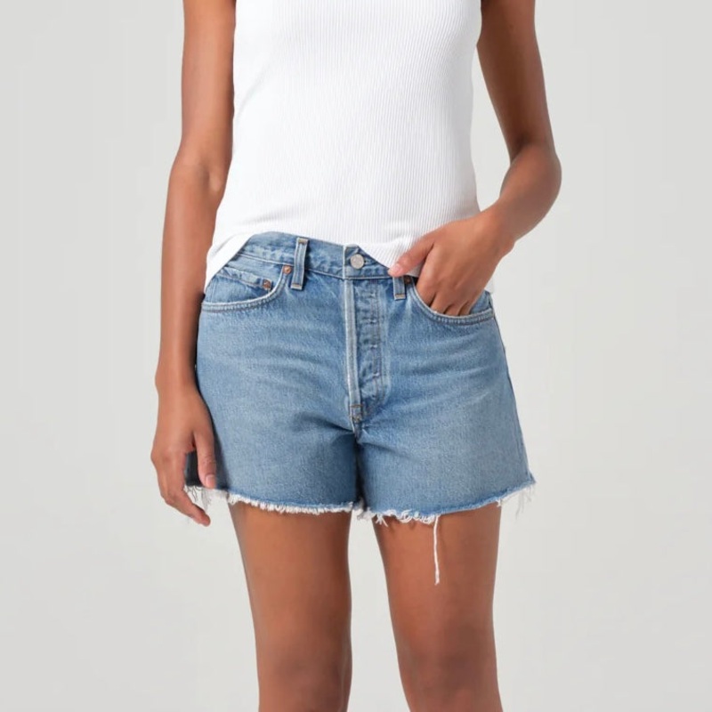 AGoldE Parker Long Short in Fairway. Inspired by our iconic Parker Short. Now designed with a slightly longer inseam for a more practical every day short. Featuring a relaxed high-rise with just enough room in the thighs for all day comfort. Crafted in our signature organic cotton – this pair will only get softer with each wash while keeping its vintage appeal.