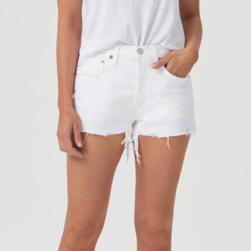 AGoldE Parker Short in Dough. White Jean Shorts.A026C-1183_DOUGHClosure:Button FlyRise:11 1/4"Inseam:2 1/2"Leg Opening:24 1/2"Fabric:100% Organic Cotton