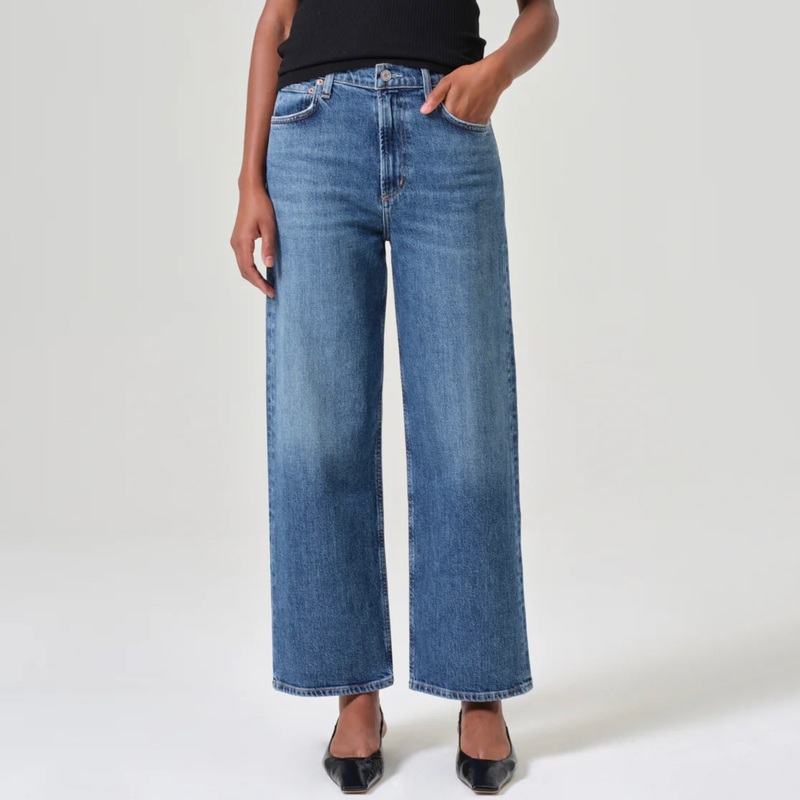 AGoldE Ren Jean in Fix. The Ren Jean is designed with a flattering high-rise waist, a relaxed fit through the hips, and finished with a wide leg silhouette.