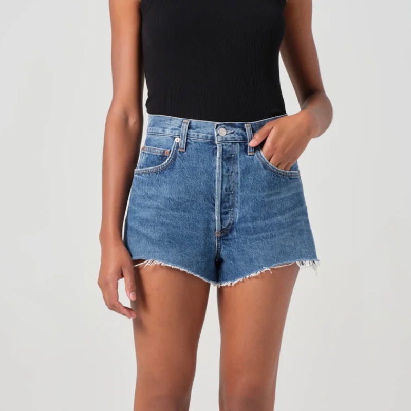 AGoldE Ridley Short in Enamour. The Ridley Short in vintage indigo offers a sleek, high-rise, contoured fit that flatters effortlessly. With a nod to vintage style and a modern edge, they pair perfectly with an oversized blazer and loafers for a polished l