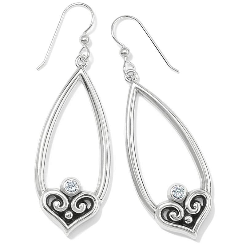 Petite hearts nestled in gorgeous teardrop frames elevate these earrings to the top of your must-wear list.