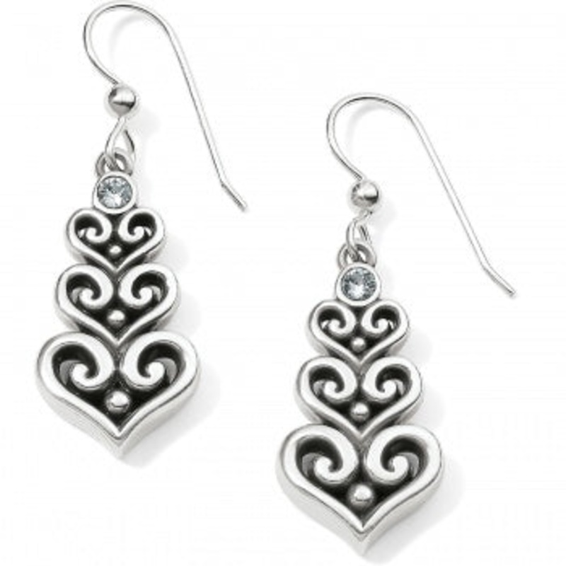 A trio of Alcazar hearts forms these romantic drops, topped by just a hint of Swarovski sparkle.Width: 1/2"Type: French WireDrop: 1"Material: Swarovski crystalFinish: Silver plated