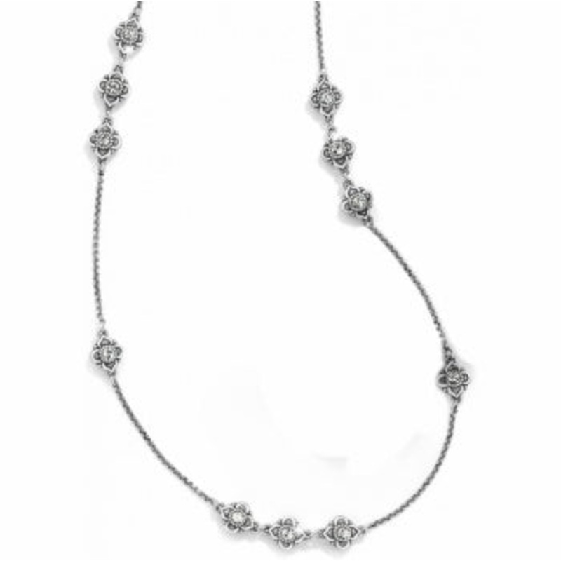 Featuring sensational Swarovski crystals in a floral-motif, this silver-plated necklace is reminiscent of the opulence of a Spanish palace. Perfect for layering.