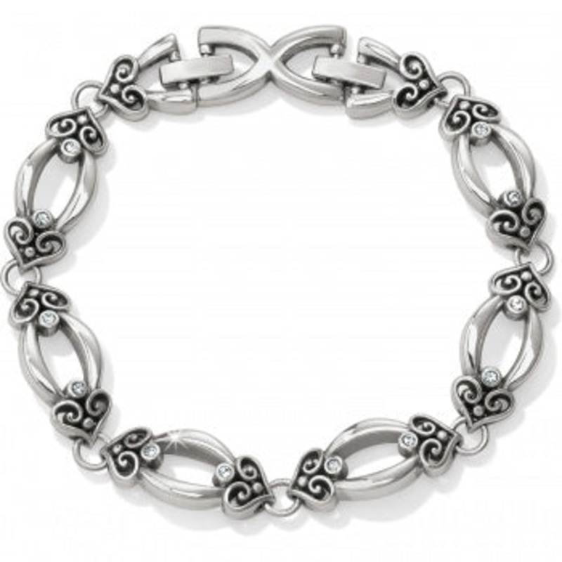 Airy and delicate, heart-finished links matching our Alcazar Collection create a bracelet that is feminine and romantic.Width: 1/2"Closure: Fold over claspLength: 7 1/4" AdjustableMaterial: Swarovski crystalFinish: Silver plated