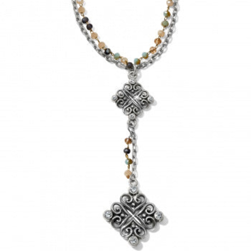 Alcazar hearts enhance the elegant drop on this delicate double chain necklace featuring earthy-hued beads. Adjustable by two full inches for a variety of necklines.