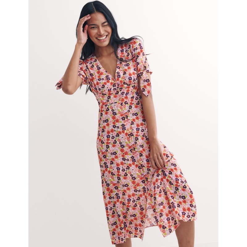 With a skimming frame and a vibrant check print, this Alexis midi ticks all boxes. It’s detailed with a button-through front and light fabric, so it’s easy to slip on and off depending on your destination. Delicate sleeve ties make it a feminine choice, complete with a classic V-neckline and a fitted waist to finish.