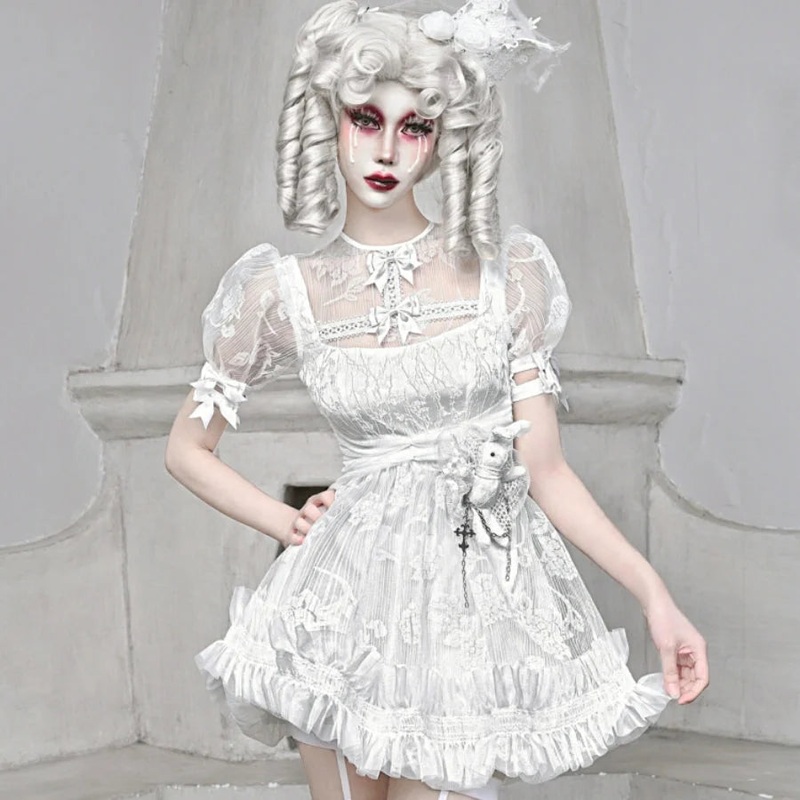 Be the first to review “Alice White Gothic Chiffon High Waist Bubble Sleeve Dress Dress S”