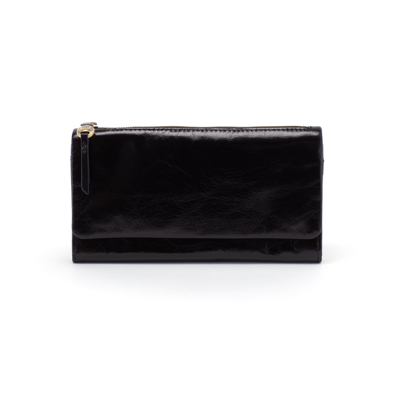 • Interior Front: Zip pocket & slip pocket; 2 bill slots, ID holder & 12 credit card slots