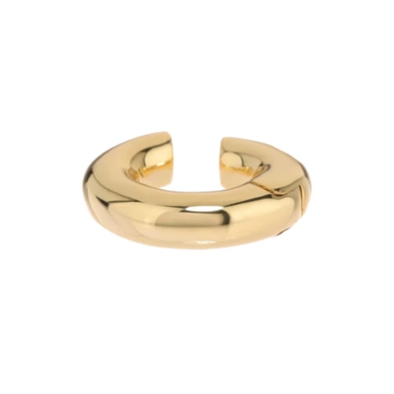 Chunky metal tube ear cuffEar cuff is 0.18" (4.6mm) thickContains a bendable hinge for comfort + easy removalSold as an individual ear cuffEar cuff is 100% nickel-free and cadmium-freeMade from BrassPlatedGold