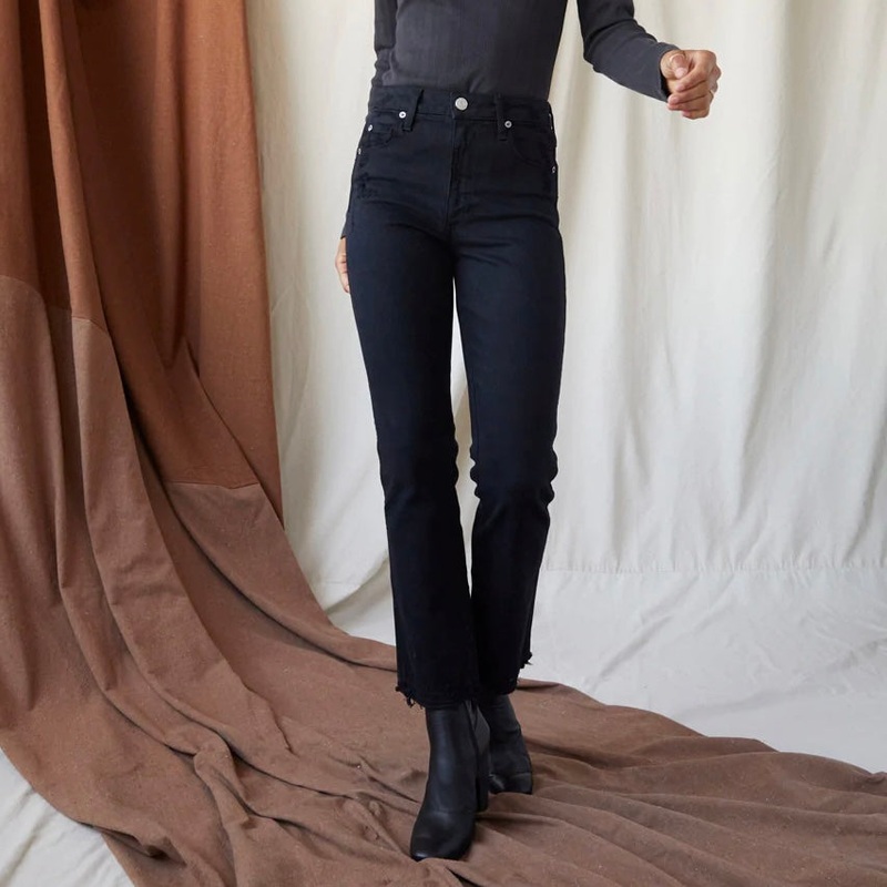 AMO Bella High Rise Boot in Black.A06257R Released HemInseam = 28"Front Rise = 11"Back Rise = 14 1/4"Leg Opening = 16"Measurements taken from size 27Phoenixis wearing size 26 and is 5'11"Fabric:98% Cotton/ 2% Elastane