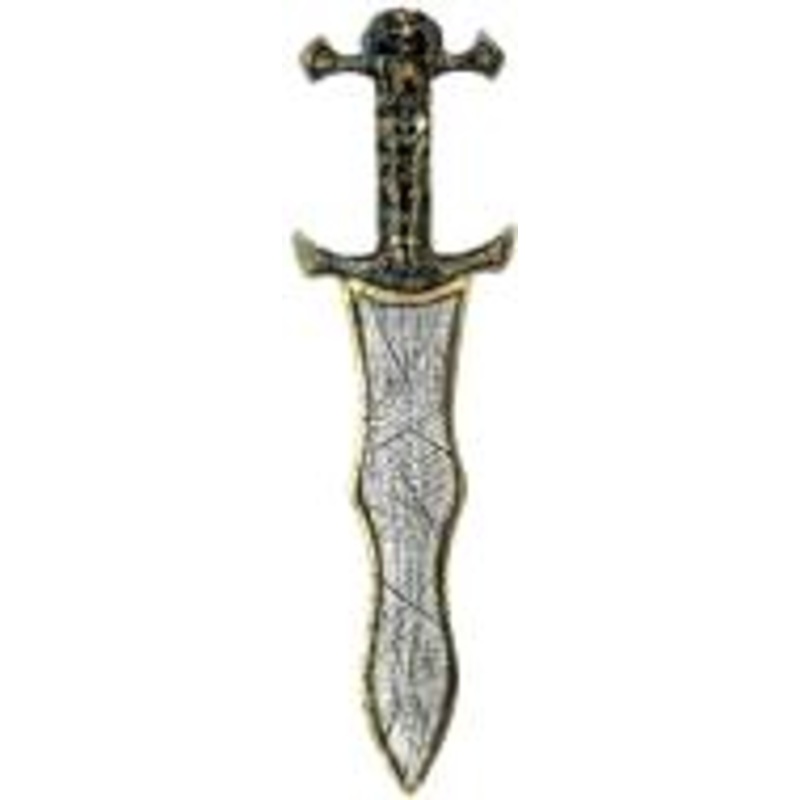 CC60414Excellent Quality very ornateheavy weight rubber.Color: Antique Silver Blade withGold Edging & Antique Gold/Black handle.Size: Sword Length: 18"Blade Width: 2.75"Weight: .9 pound.
