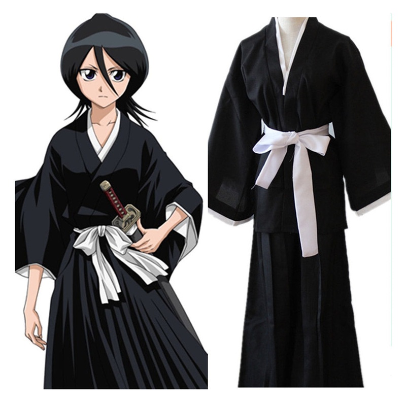 Anime Bleach Kuchiki Rukia Cosplay Costume Japanese Kimono Outfit BlackAnime BleachCharacter Kuchiki RukiaFabric :Polyester fiberIncluding :robe, pants, belt