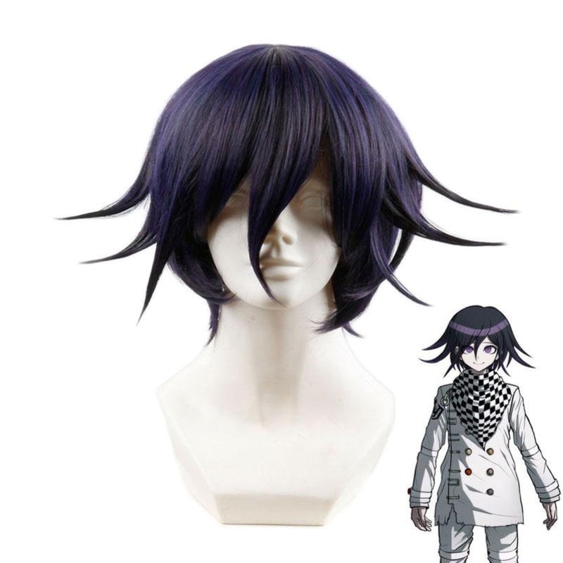 Anime:DanganRonpa V3Character:Oma KokichiMaterial:Synthetic High Temp FiberLength:38cm/14.96inchColor:Black Mixed PurpleStyle:StraightPackage:1pc wig +1pc free wig capCap Size:Average,suit for head circumference 58cm-62cmFeatures:It is very suitable for Da