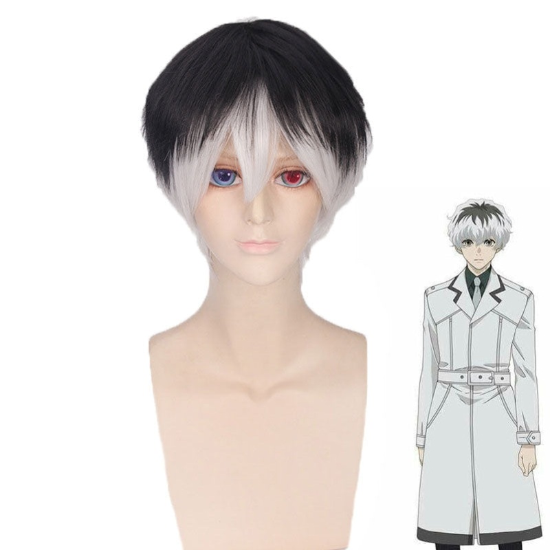 Brand:Cosplay ClansAnime:Tokyo GhoulCharacter: Haise SasakiMaterial:Synthetic High Temp FiberColor: White and BlackSize: 30cm/11.7inchCap Size:Average, suit for head circumference 50cm-60cmPackage:1pc wig +1pc free wig capTip:With hairspray will have bette
