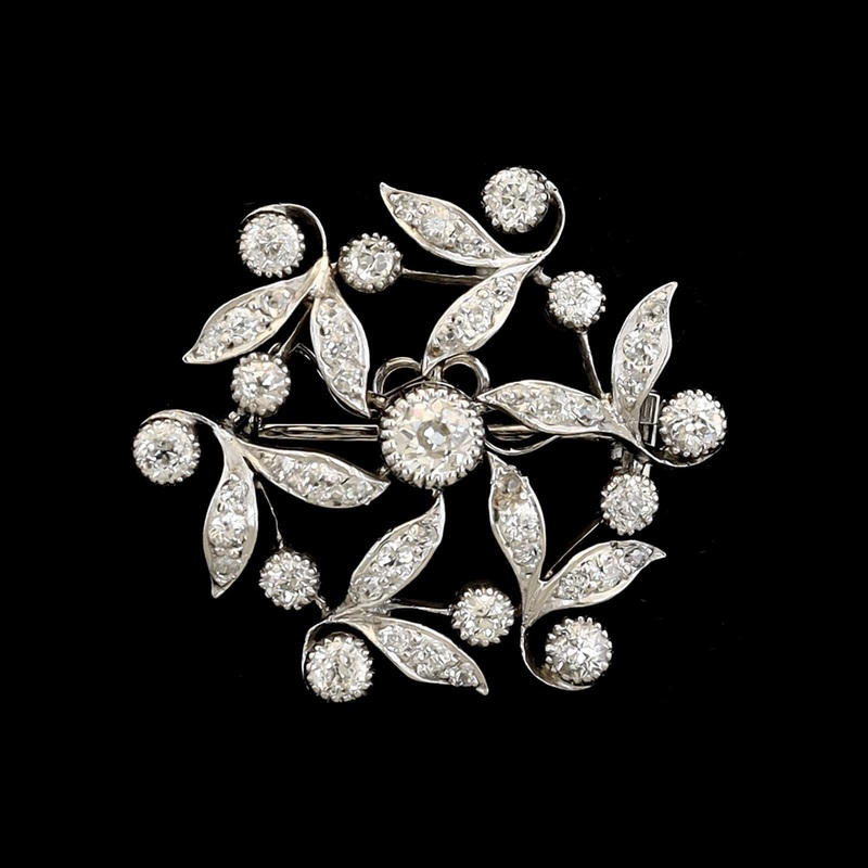 Antique 14K White Gold Estate Diamond Pin PendantThe pin is set with 49 old mine cut diamonds, approx. 1.50cttw., H-J/SI2-I1Length 1 1/4"
