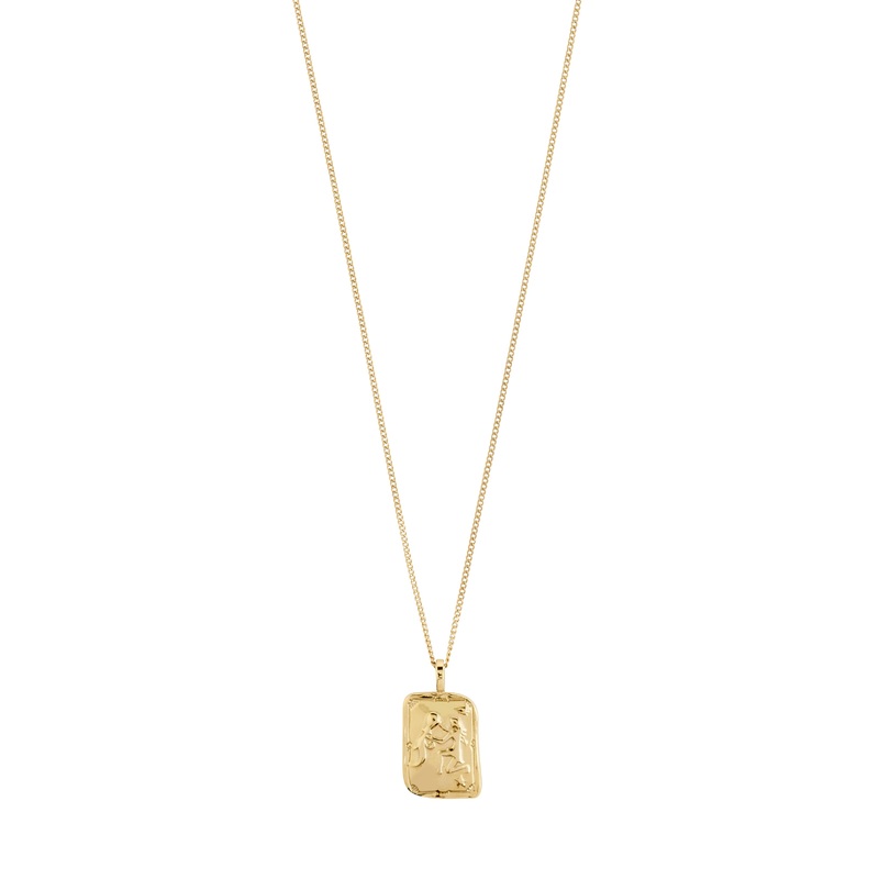 The STARS live within you! With the AQUARIUS Zodiac Sign necklace from , you get a piece as unique as yourself. A gold-plated chain with a square coin pendant in a dual-design. Flip it for either a classic Aquarius zodiac motif or your constellation, twinkling with glittering Preciosa crystals – talk about cosmic coolness! The pendant has a rustic, handcrafted look that gives it a raw genderless appearance. A piece that is not only a personal statement but also an ideal gift carrying deeper meaning and connection to the stars. The necklace measures 40 cm + 12 cm extension chain, is waterproof and made from 98% recycled material.