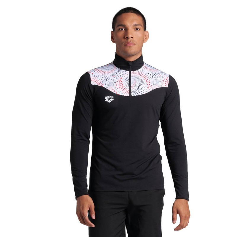Experience the winning balance with the Arena Men’s Fireflow Half Zip. Developed with elite swimmers, this 2024 Fireflow Collection is inspired by the passionate drive and focused control that fuels excellence. Represent the USA Swimming National Team in style with this official merchandise by arena. Flow like water and be fueled by fire!
