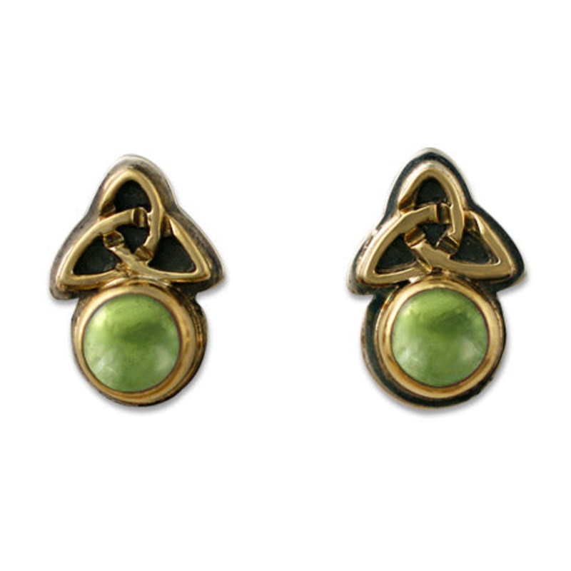 On these delicate earrings, 14K gold trinity knot motif is accented by a 6mm Garnet set in a 14K gold bezel. The design represents the maiden, mother, and wise old woman, earth, heavens and the underworld; the past, present and future. This is one of our older, classic design from Helen and it is available with a variety of gemstone choices. 14K Gold over Silver