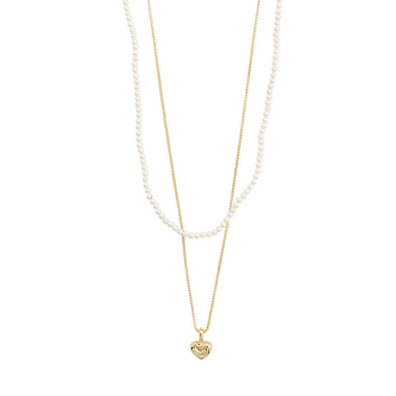 Let love rule and unleash your inner fashionista with the ARLET necklaces from , where you get 2 separate chains in one set. A slim, gold-plated box chain with a charming little heart and a pearl necklace with delicate white glass beads - perfect for creat