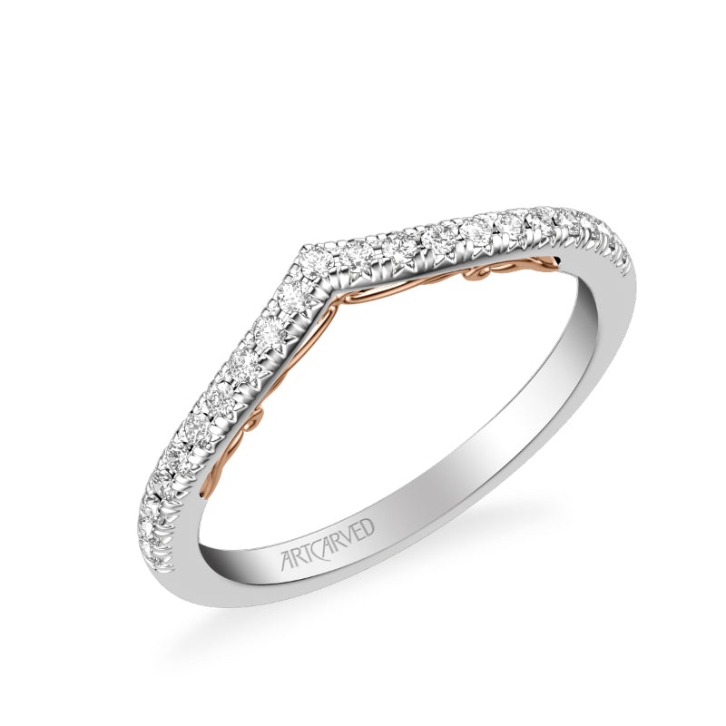 N724336791645Artcarved Bridal Mounted with Side Stones Classic Lyric Diamond Wedding Band Carly 18K White Gold Primary & Rose Gold