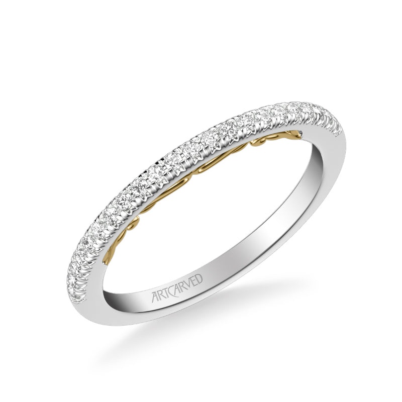 N724336791395Artcarved Bridal Mounted with Side Stones Classic Lyric Diamond Wedding Band Demi 14K White Gold Primary & 14K Yellow Gold