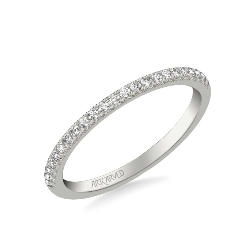 Artcarved Bridal Mounted with Side Stones Contemporary Diamond Wedding Band 18K White Gold