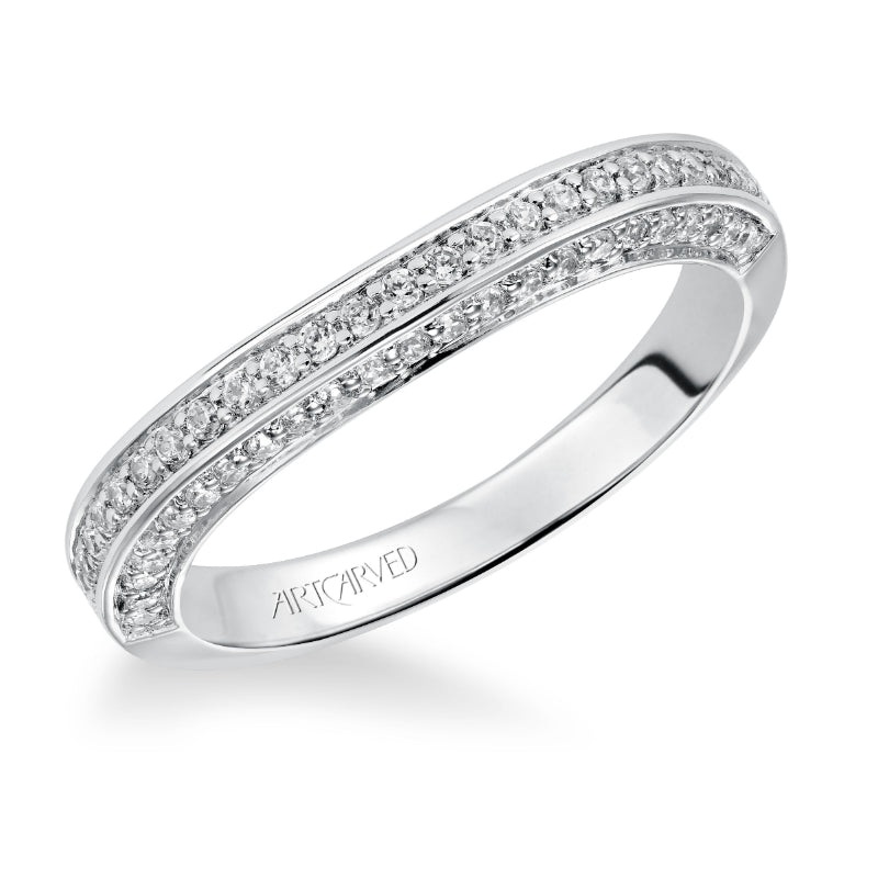 Wedding Band With Three Sides Of Bead Set Round Diamonds Halfway Around Designed To Fit Flush With Matching Engagement Ring.
