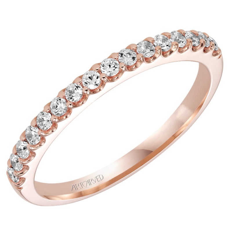 Artcarved Bridal Mounted with Side Stones Contemporary Floral Halo Engagement Ring Skyler 14K Rose Gold