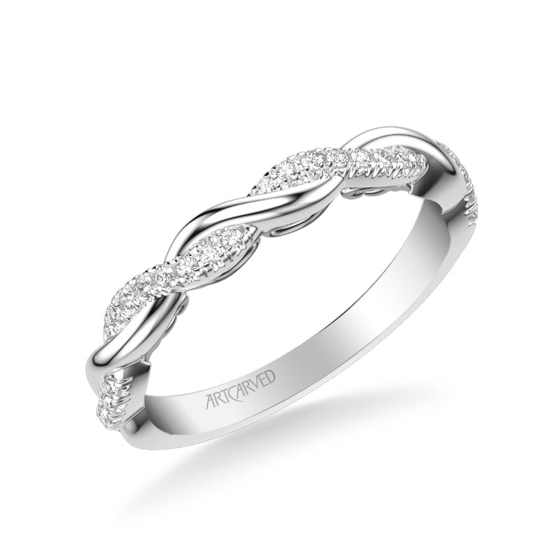 Artcarved Bridal Mounted with Side Stones Contemporary Lyric Diamond Wedding Band Tilda 14K White Gold