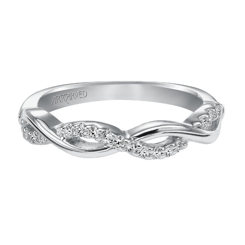 Artcarved Bridal Mounted with Side Stones Contemporary Twist Halo Diamond Wedding Band Bella 14K White Gold