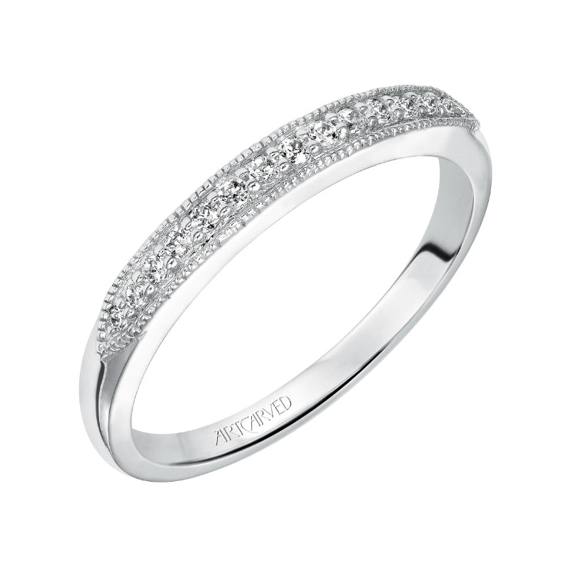 Wedding Band With Diamond Enhanced And Milgrain Shank Design.