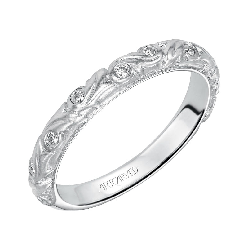 Diamond Engraved Shank W/Diamond Details Wedding Band