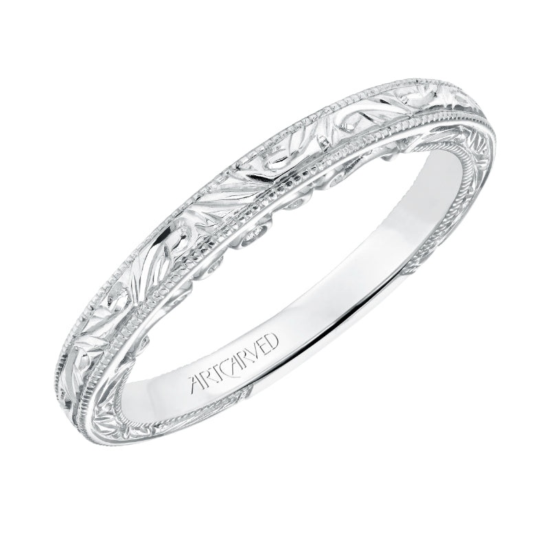 Hand Engraved And Milgrain With Surprise Stones Wedding Band To Match 31-V692