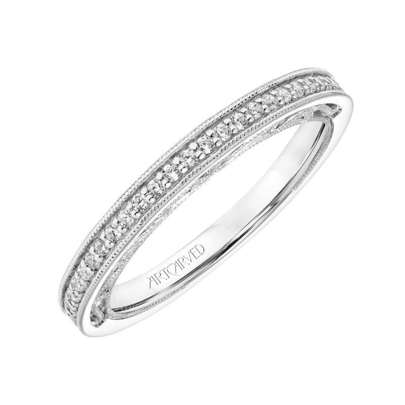 Diamond Wedding Band With Diamond Accented Floral Filigree And Hand Milgrain Detail To Match 31-V760