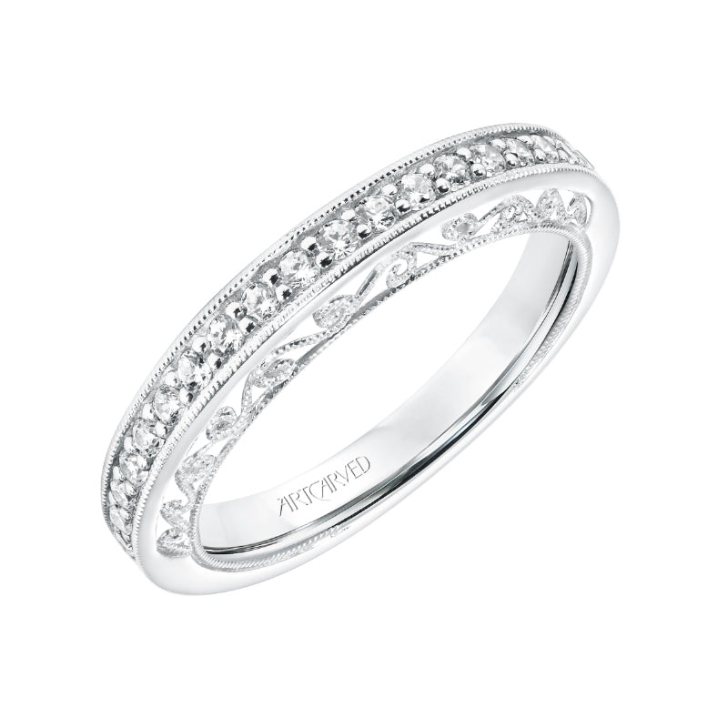 Diamond With Scrollwork Filigree And Hand Milgrain Wedding Band To Match 31-V724Grw