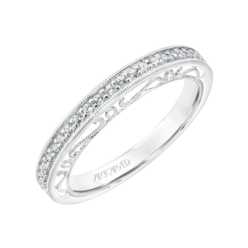 Diamond With Scrollwork Filigree And Hand Milgrain Wedding Band To Match 31-V721Erw