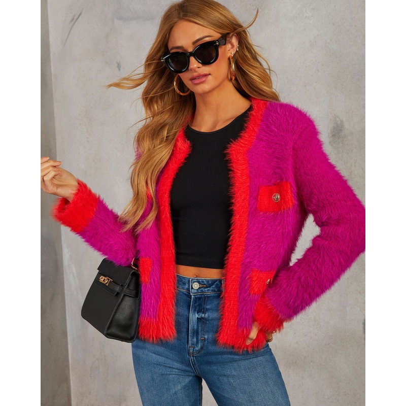 Wrap yourself in luxury with the As If Fuzzy Two Tone Cardiganthe epitome of chic, polished style. This cardigan features ultra-soft fuzzy knit fabric with elegant contrast trims that exude upscale sophistication. Gold-tone button accents add a touch of op
