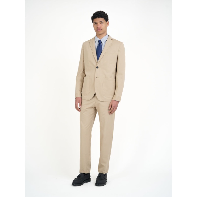 Perfect for summer weddings or smart events, our organic cotton Ashdown beige suit features our unstructured lightweight Theobald jacket with notch lapels and a two-button front, and comes with our tapered fishtail trousers for a sleek look that balances t