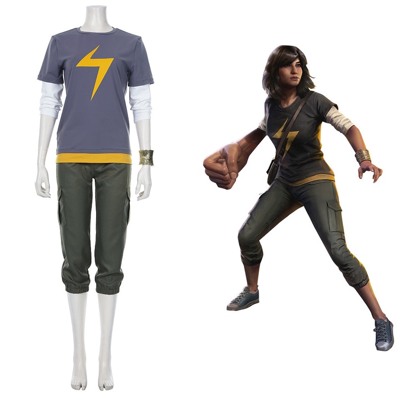 Avengers-Ms. Marvel Kamala Khan Halloween Carnival Suit Cosplay Costume OutfitMaterialCotton Cloth + Uniform ClothPackage included:Bracelet + Pants + Top
