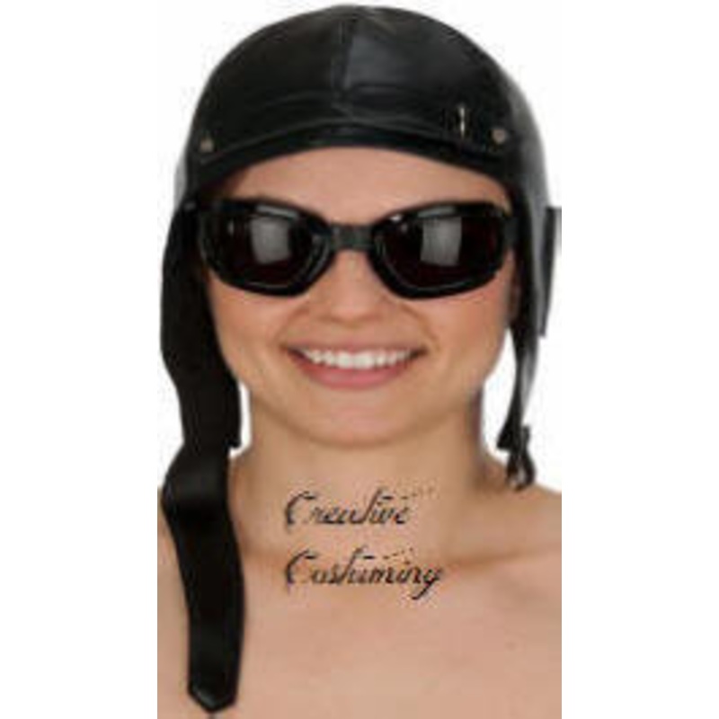 An aviator hat, also called a bomber hat, became popular in the earty 20th century as open-cockpit airplanes grew in use. Pilots needed a hat tokeep there heads & ears warm.They also needed goggles for eye protection.Size: One SizeColor: Black faux leather