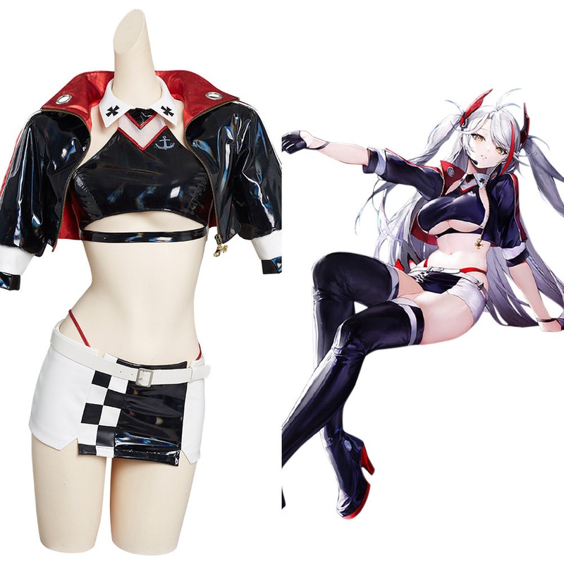 Azur Lane -Prinz Eugen Halloween Carnival Suit Cosplay Costume Racing OutfitsMaterial: Elastic Cloth + Brazilian LeatherPackage included: Coat + Gloves + Tube Top + Bottoms + Skirt + Stocking*2 + Belt