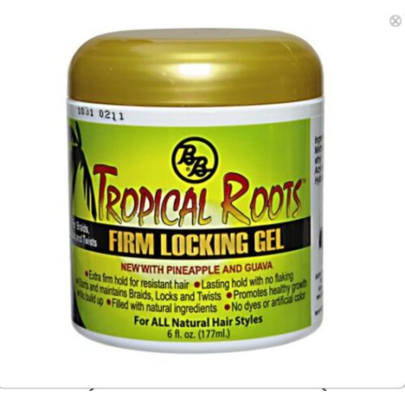 Tropical roots firm locking gelExtra firm hold for resistant hairLasting hold with no flaking. Best Beauty product.