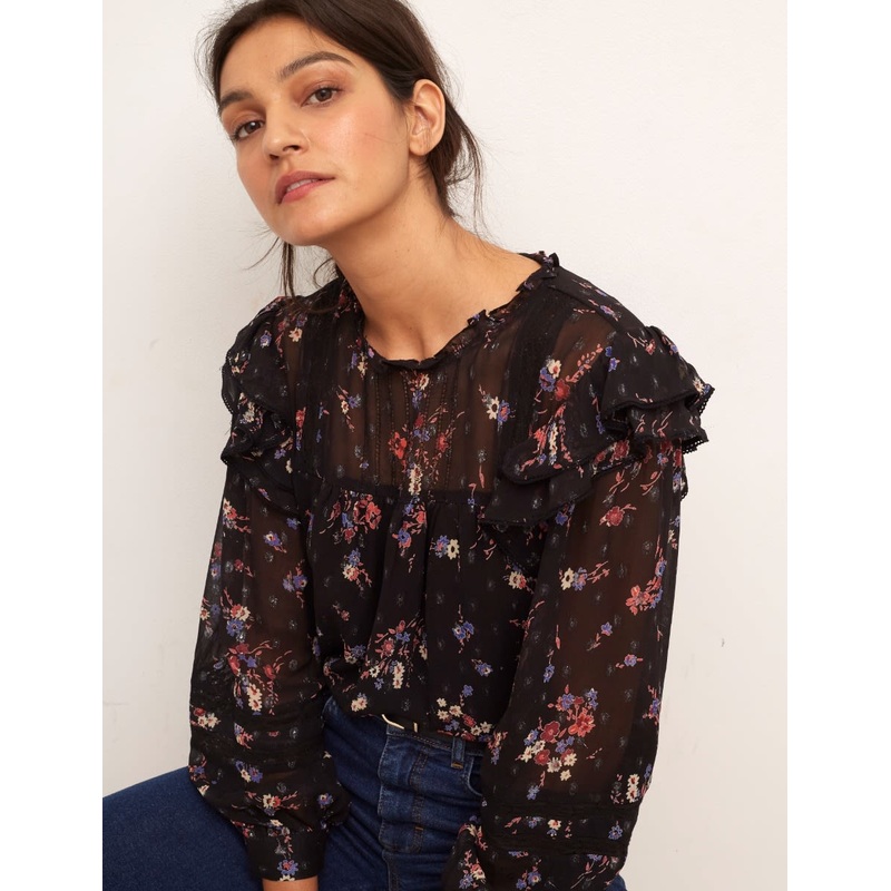 Maybe your top wants to be the centre of attention (and maybe that’s OK). Featuring a roomy fit, this Bailey blouse is detailed with voluminous ruffles and sheer fabric printed with florals. Wear wherever with your favourite denim.