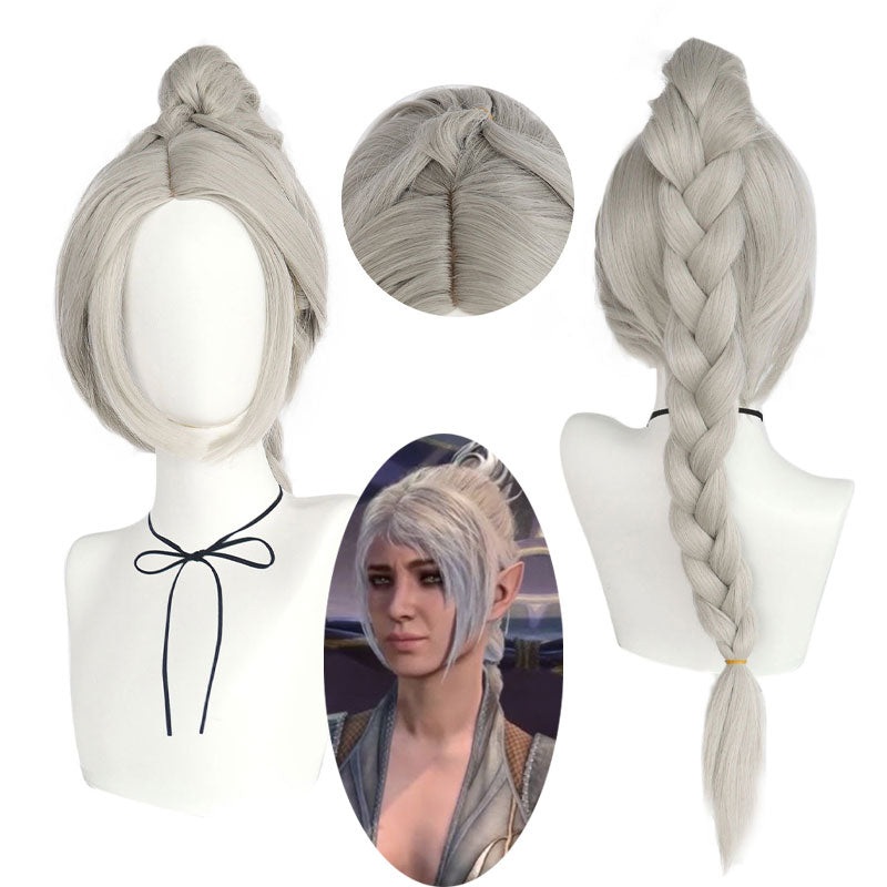 Game Baldur's Gate3 Shadowheart Cosplay WigsSource: Baldur's GateCharacter: ShadowheartLength : 70cm/27.58inchColor : GainsboroPackage:1pc wig +1pc free wig capMaterial: Synthetic High Temp FiberCap Size:Average, suit for head circumference 50cm-60cmFeatur
