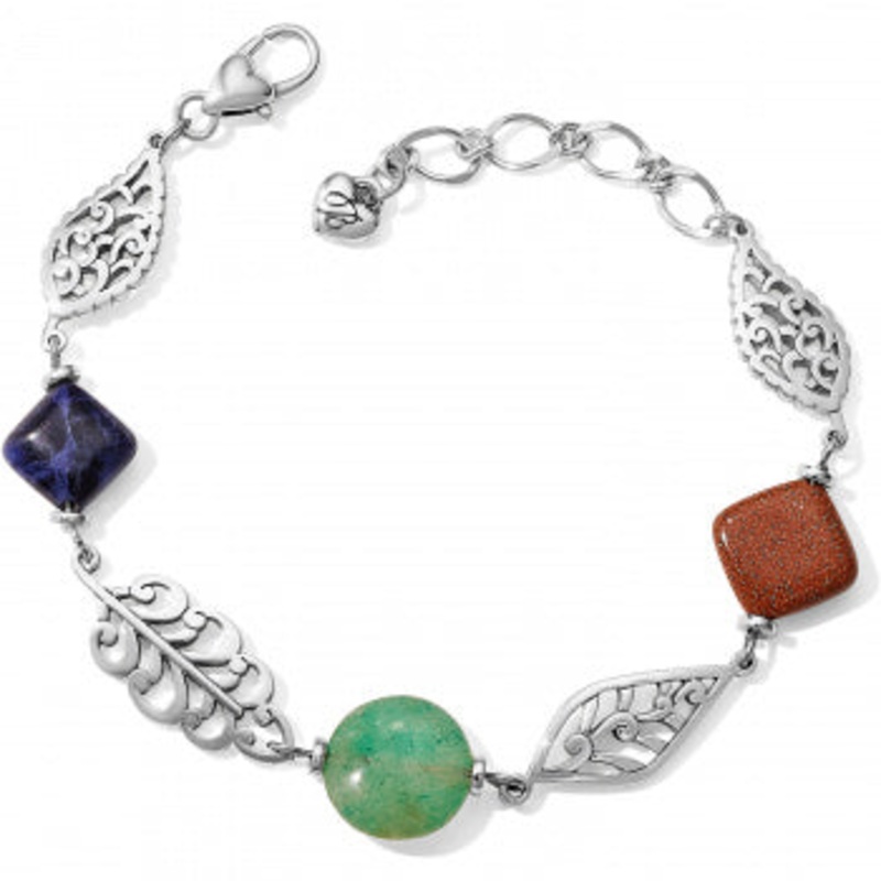 Delicate filigree leaves and natural beads of sodalite, green aventurine and brown goldstone add a touch of the outdoors to your look.Width: 1/2"Closure: Lobster ClawLength: 7 3/8" - 8 7/8" AdjustableFinish: Silver platedStones: Sodalite, Green Aventurine,
