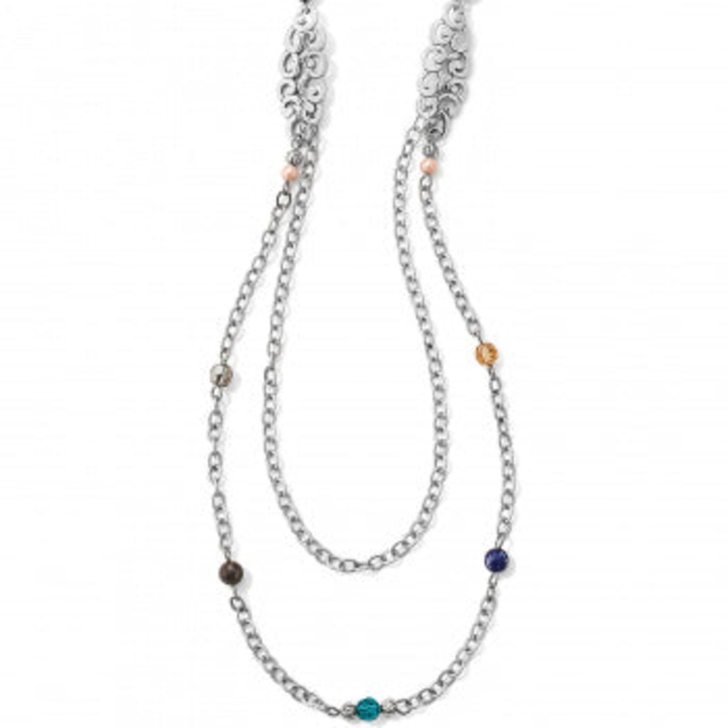 Italian for cloud, “nuvola” is the perfect name for this collection inspired by puffy clouds wafting across a Tuscan landscape. Pierced openwork echoes Brighton classics but, frameless, is just a bit softer. A gentle rainbow of natural stones and crystals adds lovely color to this layered necklace.
