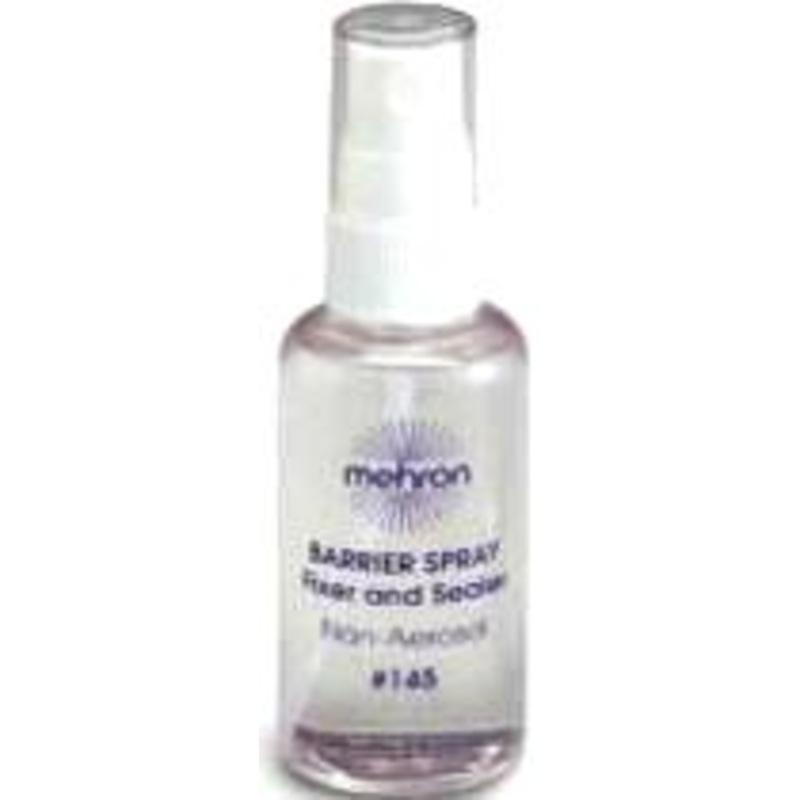 Barrier spray is a clear liquid that sets makeup designs & protects sensitive skin from latex & adhesives. Great for all makeup applications such as, modeling, TV, stage, clowning, face painting, Halloween, special effects & photography.