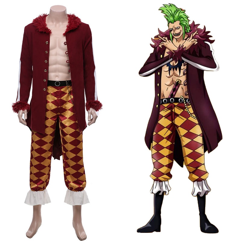 Bartolomeo One PiecePirate Warriors 4 Cosplay Costume Halloween Carnival CostumeMaterialCotton Linen + Elastic Cloth + Faux Leather + Satin + Woolen FabricPackage included:Belt + Coat + Pants