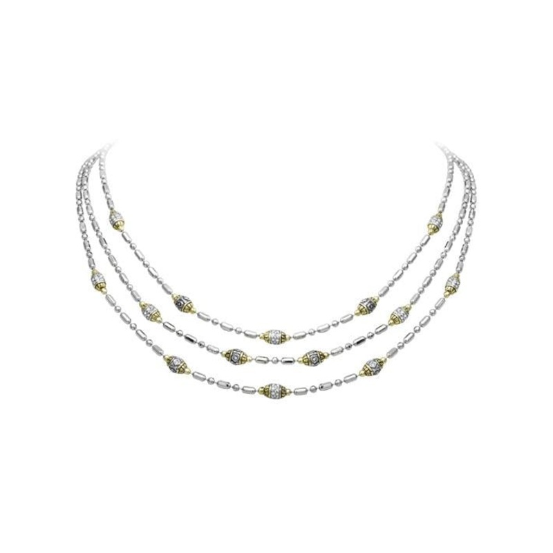 Made with rhodium and gold. Guaranteed for life.Beaded PavTriple Strand Necklace by John Medeiros Jewelry Collections.Inner Diameter: 16"